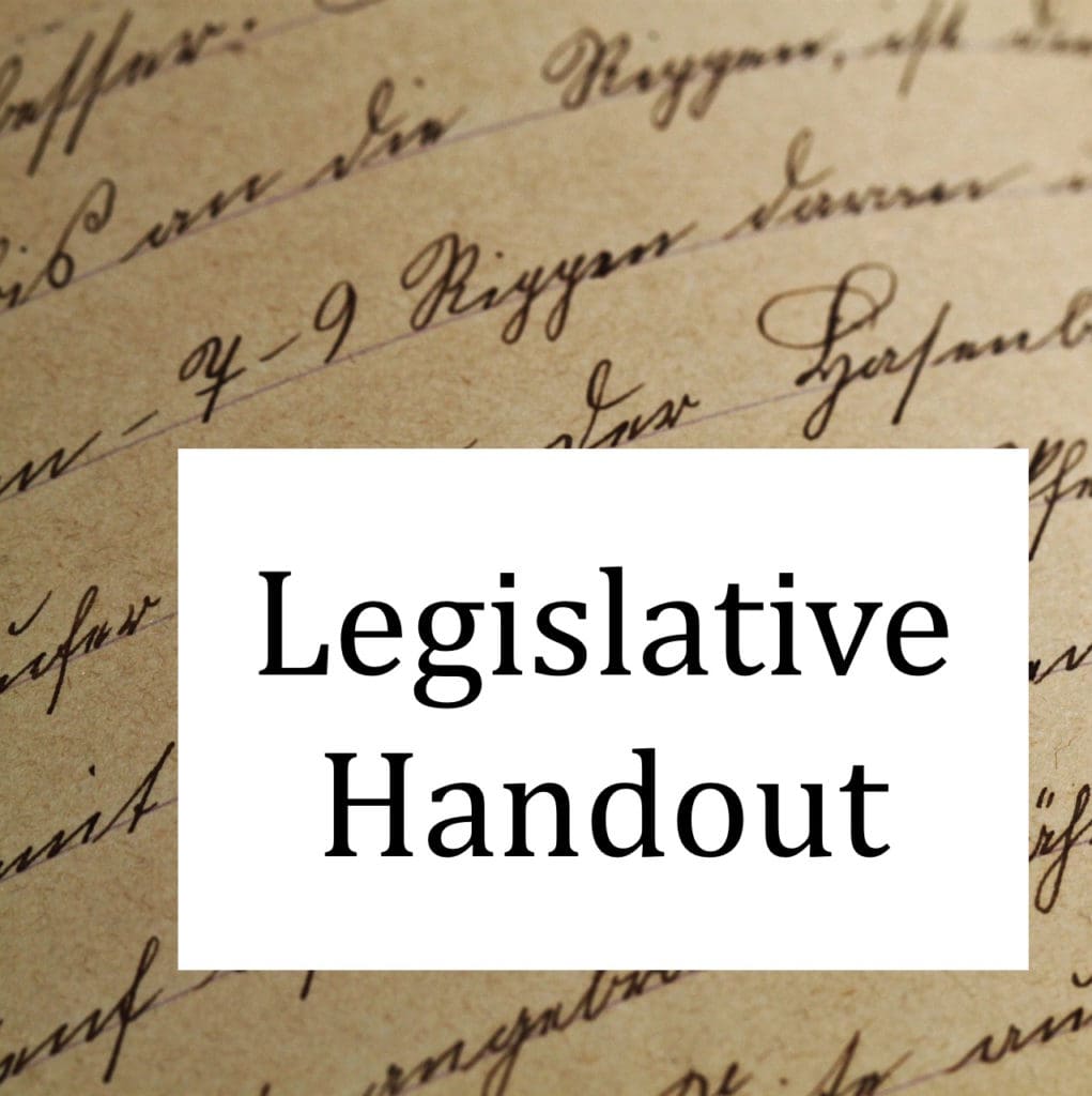 - Our Legislative Handout can be printed and handed to your legislator or their staff during or following a meeting, folded into a letter, sent as an email attachment, or you can simply use it as your guide through a conversation.