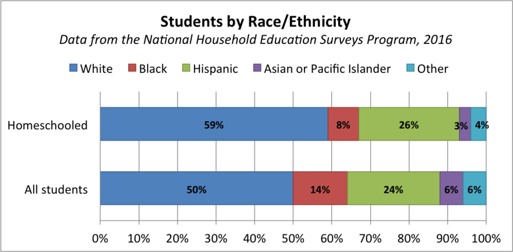 Analysis: Despite changing demographics, homeschooling remains disproportionately white. Homeschooled students are as likely as other students to be Hispanic, but are less likely to be black, Asian, Pacific Islander, or other.